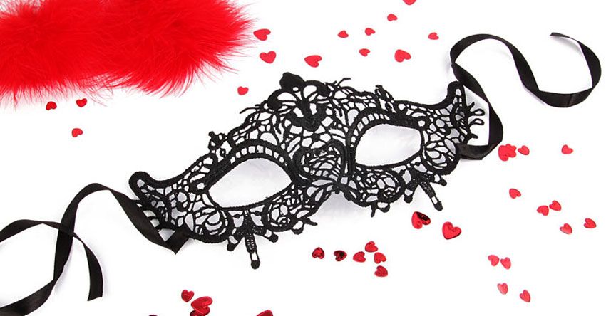 Создайте таинственный образ, где вы будете играть роль неприступной, но очень яркой обольстительницы. Ажурная маска на глаза не скроет ваш взгляд, но придаст образу особого шарма.