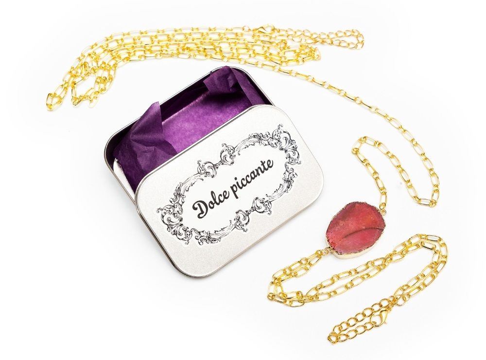 Цепочка-колье, опоясывающая женское тело. Это колье можно и даже нужно носить без одежды, оно создано для обнаженной красавицы. Украшение, подчеркивающее женственность и страсть. Родированный металл цвета золота. Яркий натуральный камень. Великолепное исполнение. Металлическая коробочка-шкатулка. Коллекция нежных аксессуаров для ночей любви - Dolce Piccante. Лимитированный тираж.