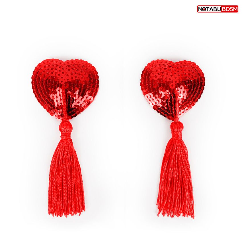 Пэстисы в форме сердца с кисточками. Украшены мелкими пайетками.