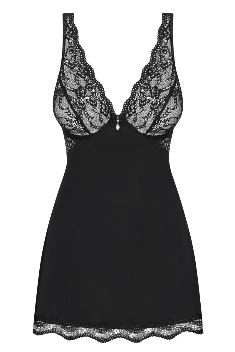 Сексуальная, открытая спина и красивый дизайн бюстгальтера - это то, что вы отмените при виде сорочки Luvae. Жемчужина между мягкими чашками заставит вас чувствовать себя очень элегантно и стильно, и ваш мужчина не сможет отвести от вас взгляд. Сделайте ваши вечера полными приятных ласк и чувственных ощущений. А как насчет утра? Его не нужно начинать с кофе ... В комплекте: сорочка и трусики-стринги.