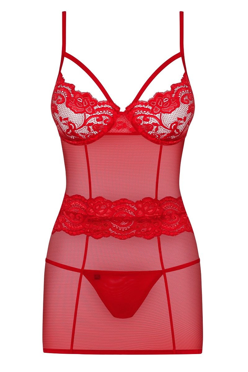 Эротическая сорочка с красивыми линиями декольте. В комплекте: сорочка, трусики-стринги.