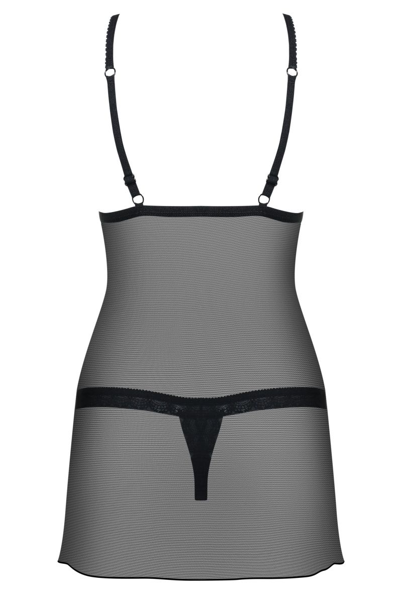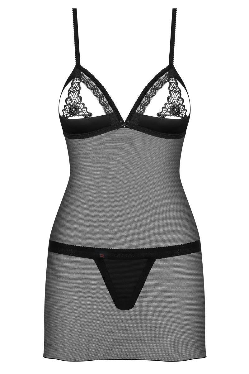 Открытый лиф сорочки декорирован вставкой из кружева, бретели регулируются. В комплект входят трусики-стринги. В комплекте: сорочка, трусики-стринги.