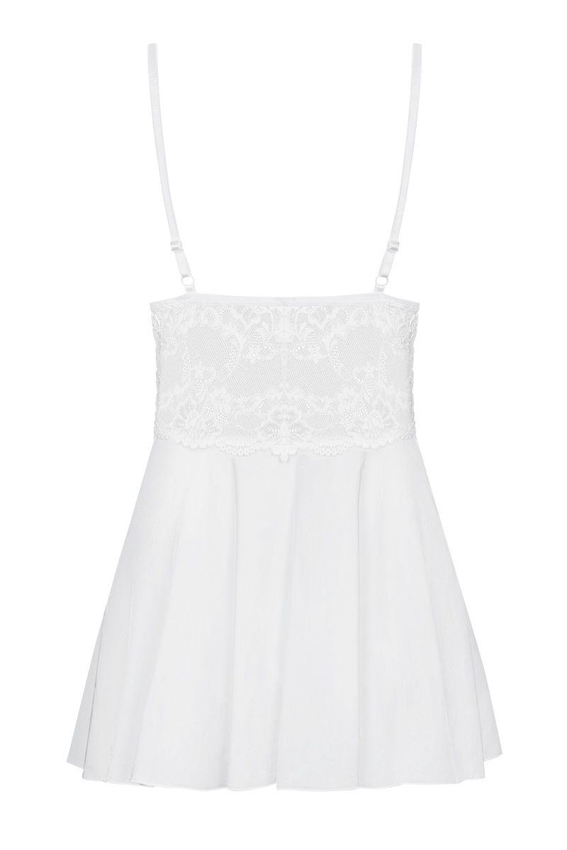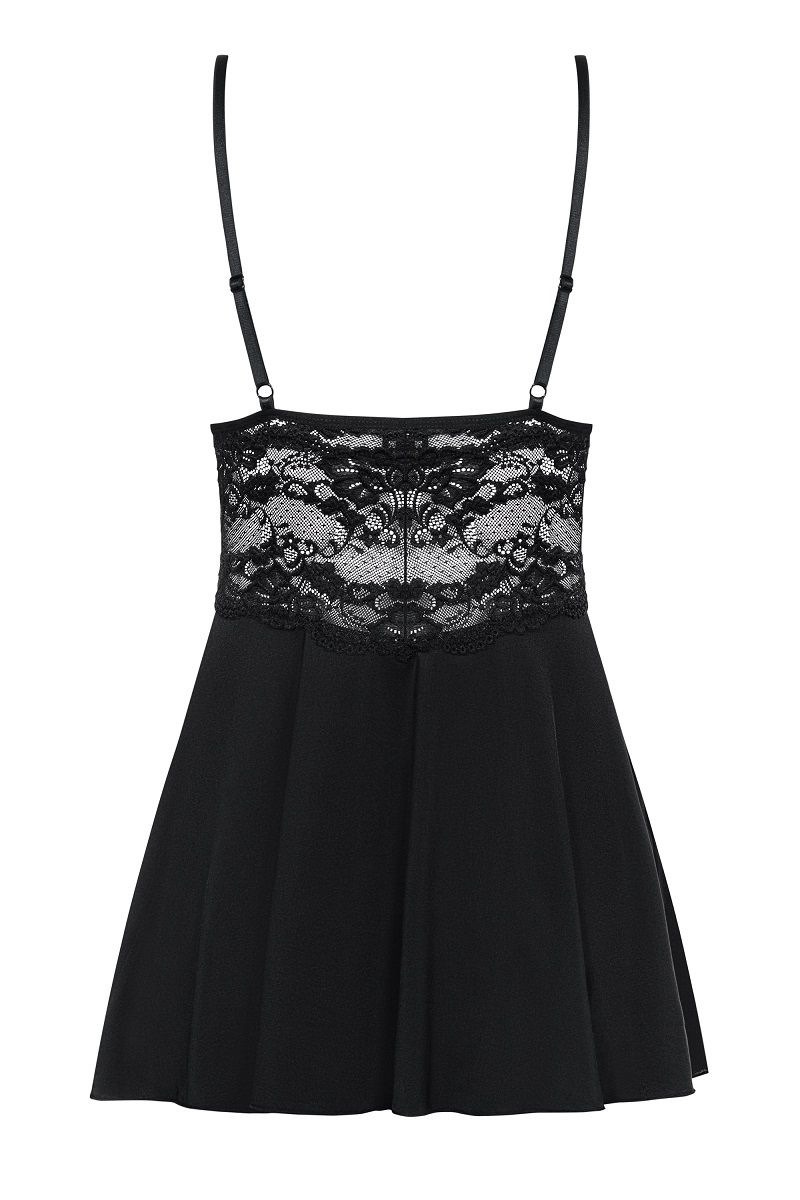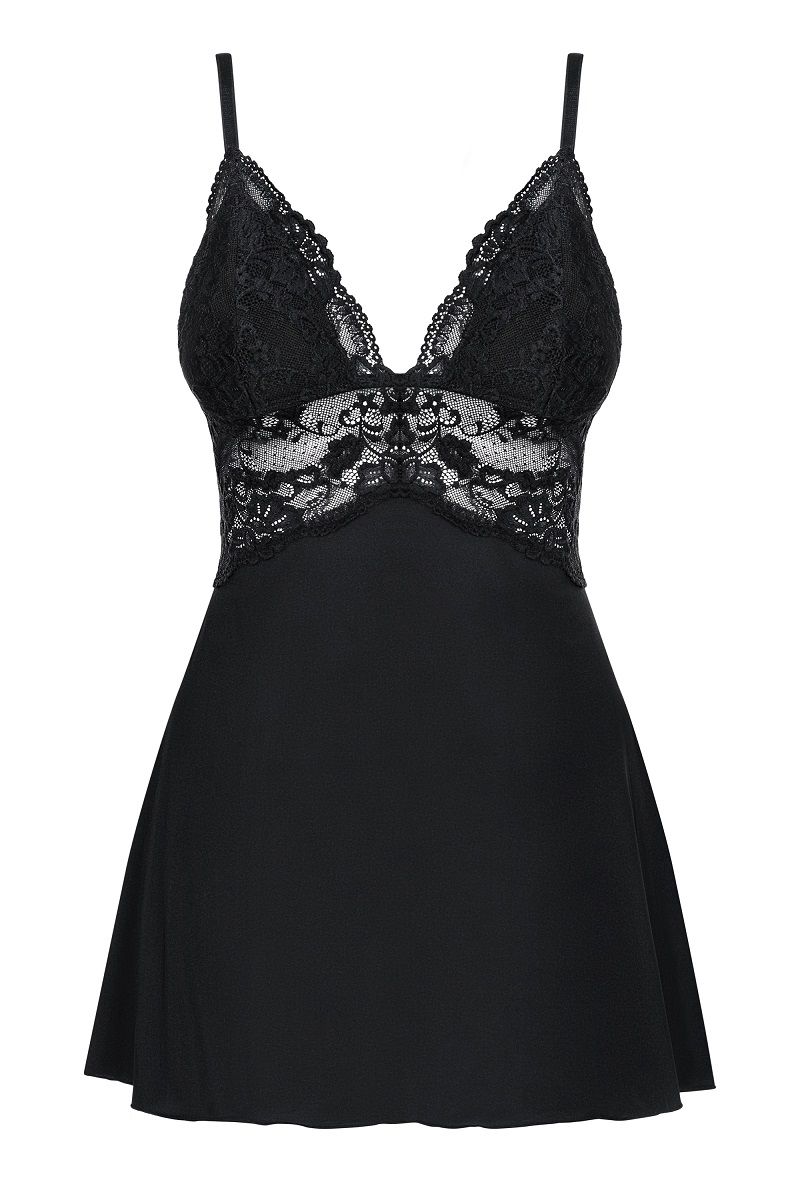 Элегантный бэби долл с расклешенным силуэтом из стрейч-атласного материала, украшена кружевом. В комплект входят трусики. В комплекте: сорочка, трусики-стринги.