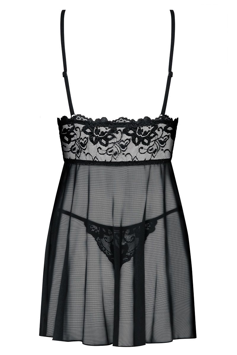 Эта сорочка бэби-долл подчеркнёт вашу женственность. Полупрозрачная, выполненная из практически невесомого материала, она окутает ваш стан лёгкой дымкой. Кружевной лиф с широкой ажурной полосой под ним притянет взгляд к груди, а также визуально переместит линию талии выше. Вот почему ножки будут выглядеть такими длинными! Лёгкий подол, укрывая животик, трусики-стринг и бёдра пышными складками, завершит образ роковой соблазнительницы. В комплекте: сорочка, трусики-стринг.