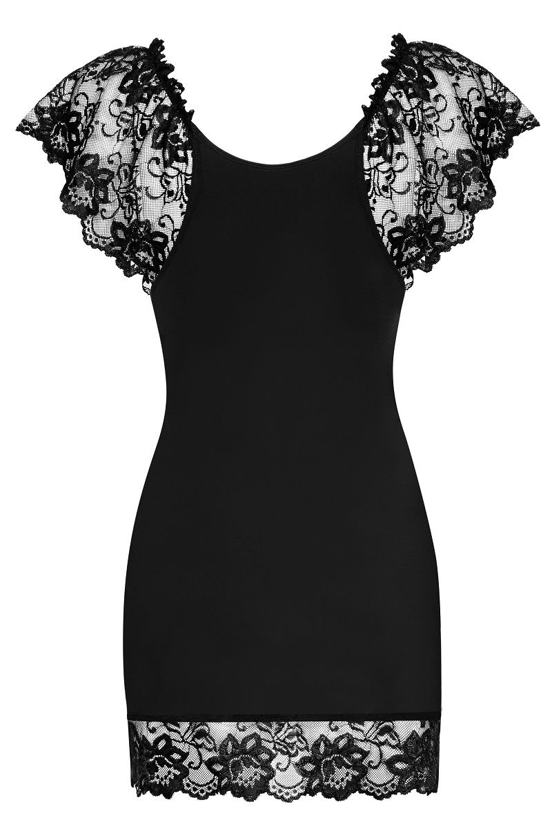 Классика и элегантность объединились с кокетливой невинностью. Цветочный мотив окружает бюст и часть резинки на плечах, благодаря которой ткань соблазнительно спадает с плеч. Нижняя часть сорочки, завершенная при помощи игривого, волнистого кружева, придает очарования. Часть сорочки между кружевами выполнена из гладкой ткани, благодаря которой каждая женщина почувствует себя комфортно – идеальное решение для застенчивых девочек. Этот стиль отлично показывает сильные стороны женщины. Объединенный с исключительным характером создает идеальное сочетание. В комплекте стринги из эластичной ткани. В комплекте: сорочка, трусики-стринг.