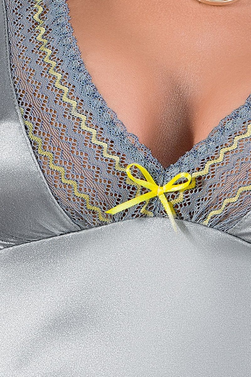 Серебристая сорочка Avena с кружевной оторочкой. В комплекте: сорочка, трусики-стринги.