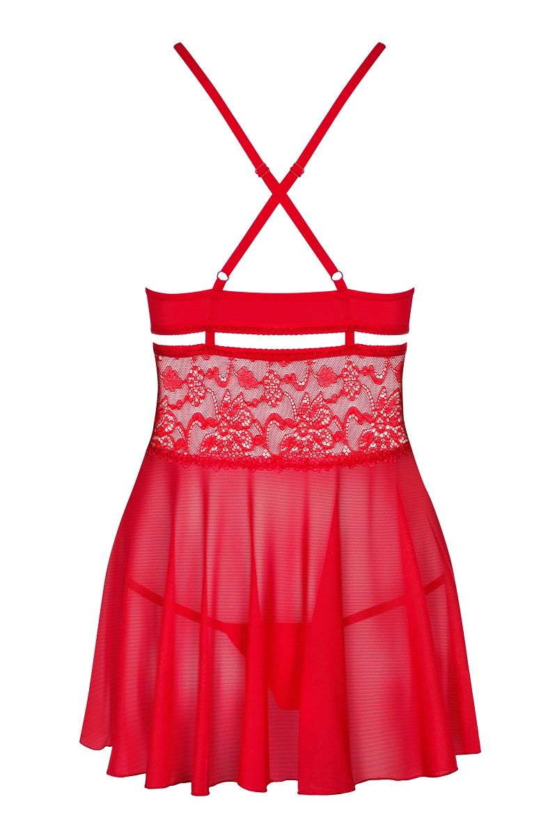 Яркий бэби-долл с изысканным цветочным кружевом. В комплекте: сорочка, трусики-стринги.