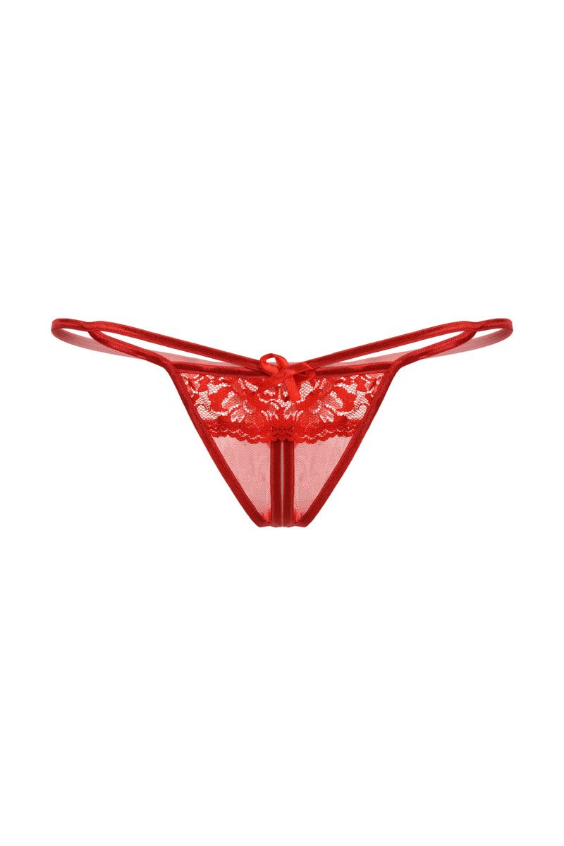 В моменты, когда страсть особенно сильна, нередко страдает…бельё. Жаждая ласки, мужчина срывает его с тела любимой, не думая ни о его красоте, ни о стоимости. Эти трусики-стринг с кружавчиками способны выдержать даже самый мощный секс-натиск. Всё потому, что внизу имеется разрез, он же – доступ к святая святых.