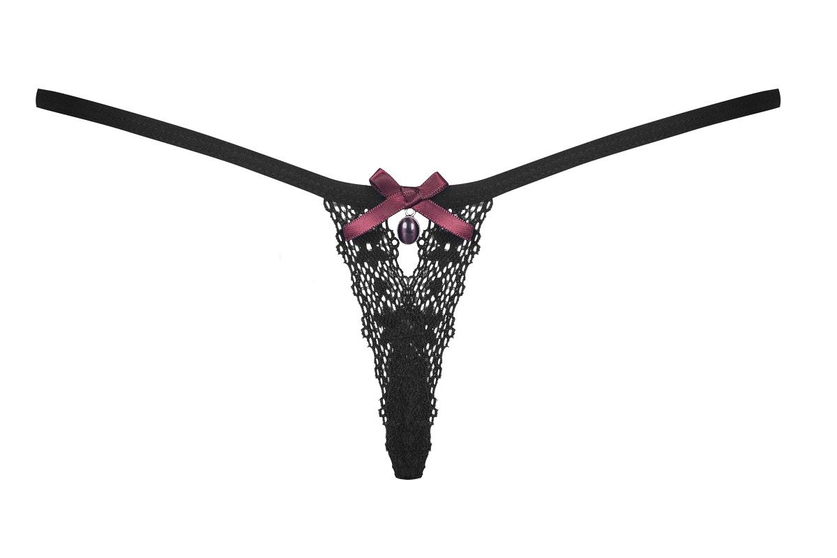 Ажурные трусики-стринги с фиолетовой подвеской и бантиком сзади.