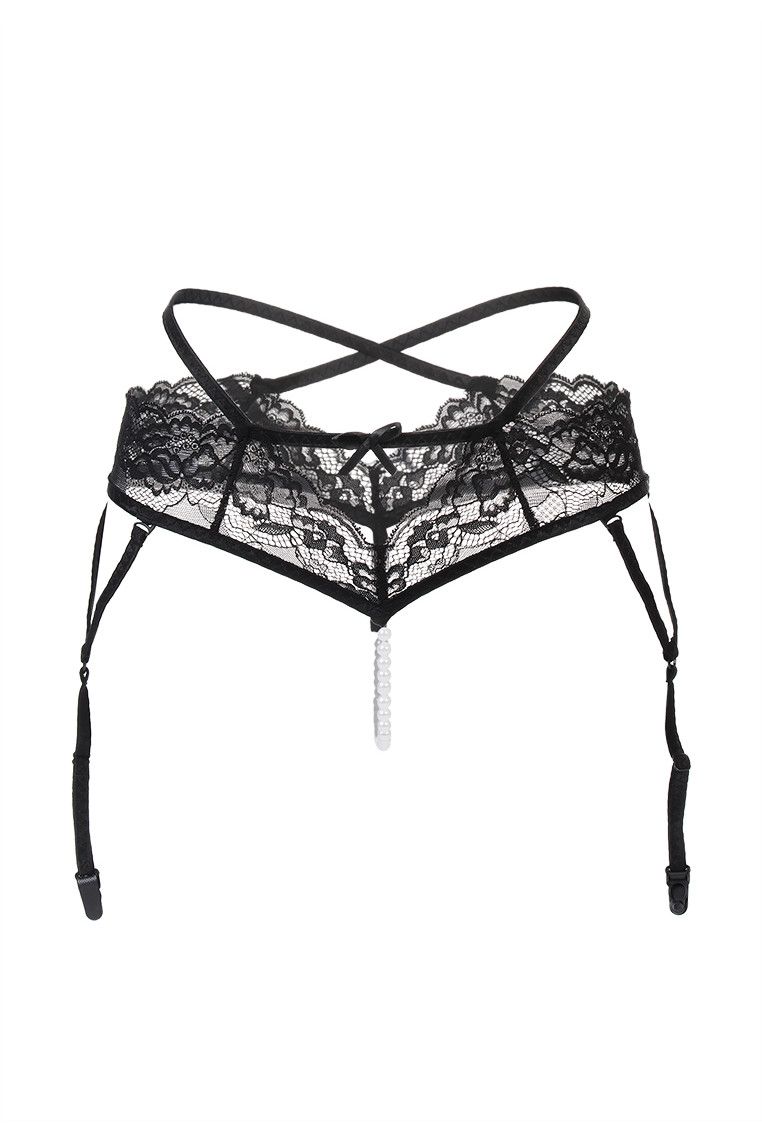 Эластичные трусики-пояс с жемчужной нитью Erolanta Wendy слишком роскошные, чтобы держать их в тайне. Тонкое кружево покрывает бедра нежнейшими лепестками ажурных цветов. Жемчужная нить нежно стимулирует и украшает. Перекрещивающиеся стрепы добавляют образу нотку дерзости, а регулируемые съемные пажи, повторяющие боковую линии бедра, эффектно дополняют образ с чулочками. Провокационный дизайн открывает доступ к интимной зоне и позволяет наслаждаться игрой, не снимая трусики.