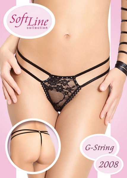 Эти трусики-стринг с оригинальными двойными бретелями, сливающимися в одной точке сзади, покажут максимум обнажённого тела и минимум чувствительных местечек. Изысканные кружева с цветами, окружённые стразами, лишь намекнут: «Самое сладкое – тут!».