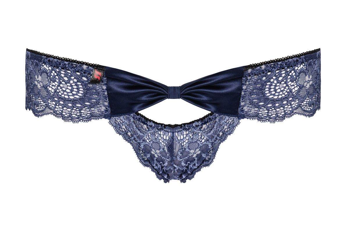 Оригинальные кружевные трусики с окошком и поясом-бантом. Выдающийся дизайн, бантик спереди с небольшим соблазнительным вырезом. Уникальная комбинация сатина и кружева.