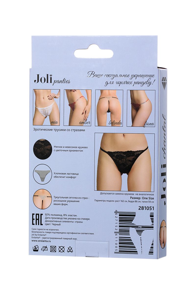 Полупрозрачное цветочное кружево впереди подчеркнет эротический настрой. Тонкие, мягкие лямочки и хлопковая ластовица обеспечат комфортные ощущения. Главный сюрприз - треугольная сеточка из страз на попе. Оригинальное колье, которое подчеркивает формы ваших ягодиц.