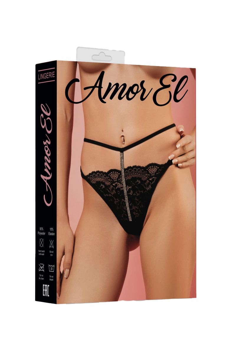Кружевные трусики-стринги с декоративной полоской из кристаллов и резинкой на талии.