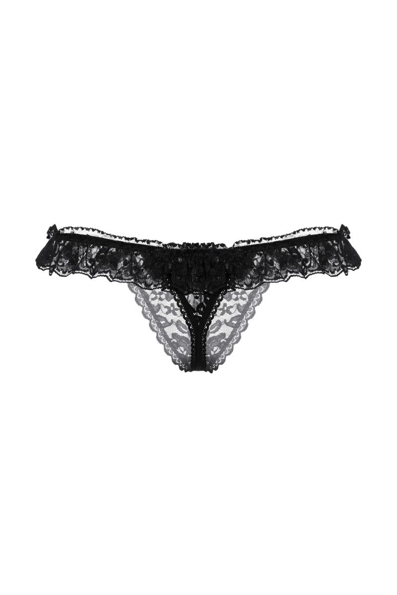 Эти трусики-стринг выдержат не одну сексуальную атаку вашего мужчины. А всё потому, что в них предусмотрен прямой доступ к вашим прелестям! Увидев вас в кружевном белье с оборками и мгновенно вспыхнув желанием, любимый сможет приступить к самым что ни на есть активным действиям по вашему удовлетворению.
