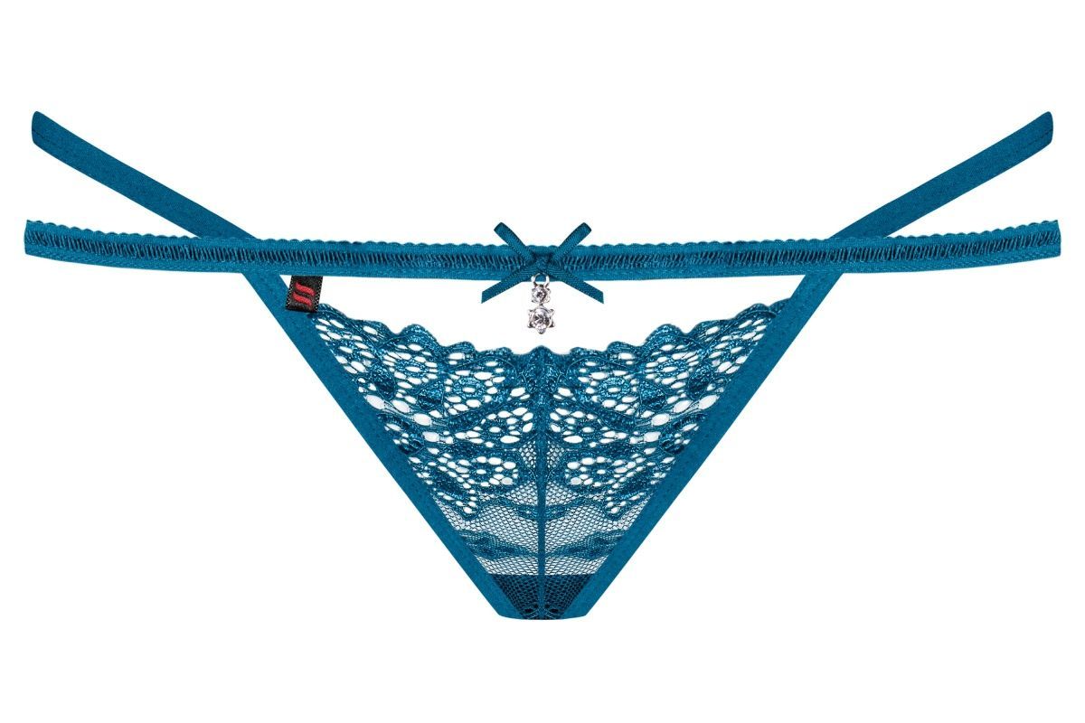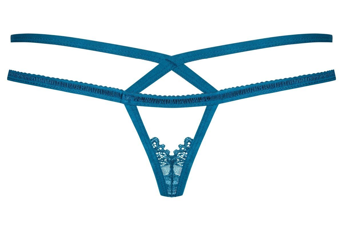 Яркие трусики-стринги с окошком и двойными бретелями.