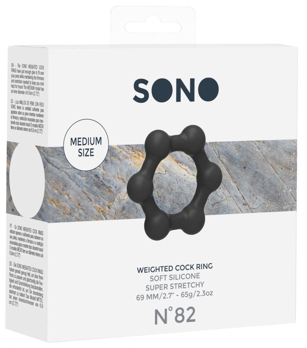 N 82 Weighted Cock Ring – стимулирующее эрекционное кольцо для пениса, изготовленное из эластичного материала. Кольцо препятствует оттоку крови для поддержания эрекции и замедляя процесс эякуляции. Небольшие специализированные шарики, расположенные по всему периметру кольца, способствуют дополнительной стимуляции. Внутренний диаметр - 3 см.