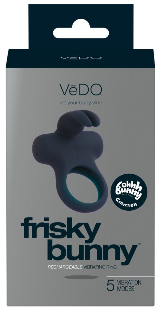 В секс-шопе Orgasmix вы можете купить Чёрное эрекционное перезаряжаемое виброкольцо VeDO Frisky Bunny артикул 129161 по цене руб. с доставкой в город Москва. Мы осуществляем доставку по всей России. Ближайшая дата отправки этого товара . Заказы принимаются круглосуточно через интернет-магазин.