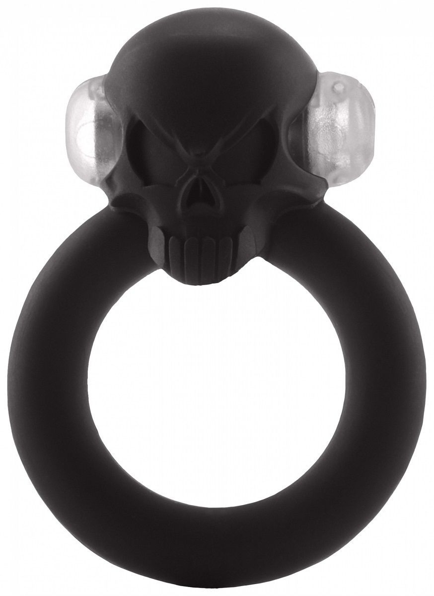 Виброкольцо на пенис с клиторальным стимулятором-черепом. Батарейки в комплекте. Внутренний диаметр - 2,4 см.