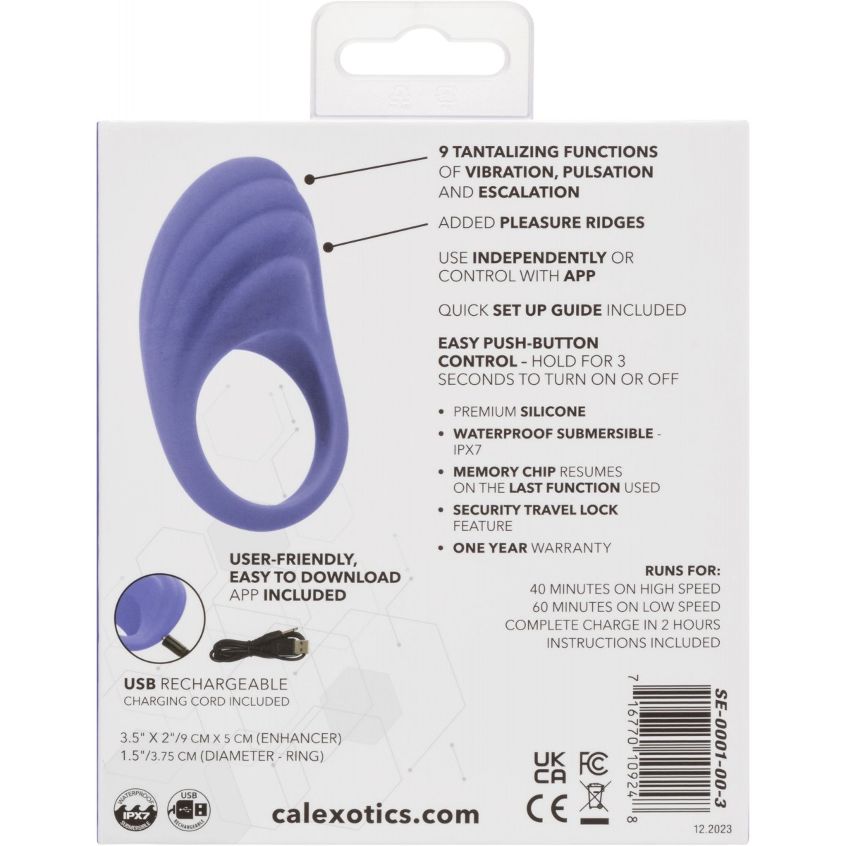 Окунитесь в возможности футуристической близости с кольцом CalExotics Connect для пар, передовым устройством, которое выводит удовольствие на новый уровень с помощью управления на основе приложения. Это кольцо, разработанное для пар, которые стремятся улучшить свои интимные ощущения, представляет собой идеальное сочетание технологий и чувственности, предлагая новое измерение связи и волнения в общие моменты.Кольцо можно использовать независимо или управлять им с помощью удобного и легко загружаемого приложения. Эта функция обеспечивает плавную и творческую игру, позволяя вам и вашему партнеру исследовать новые сферы удовольствия вблизи или издалека. Интуитивно понятный интерфейс приложения упрощает навигацию по различным настройкам.Благодаря 9 функциям вибрации, пульсации и эскалации оно обеспечивает широкий спектр ощущений в соответствии с вашим настроением. Каждая настройка разработана для того, чтобы предложить уникальный опыт, от нежных импульсов до интенсивных вибраций. Дополнительная ребристость на кольце усиливает ощущения, делая каждое прикосновение более волнующим. Изготовленное из безопасного для тела силикона, это кольцо не только удобное, но и на 100% водонепроницаемое, приглашающее к исследованию в различных условиях.Отдавая приоритет удобству и конфиденциальности, это кольцо включает в себя современный чип памяти, который возобновляет работу с последней использованной функции, а также функцию блокировки для путешествий, активируемую трехсекундным удержанием. Перезаряжаемое через USB и в комплекте со шнуром для зарядки, оно обеспечивает полную зарядку всего за 2 часа. С 40 минутами высокоскоростного наслаждения или 60 минутами на более низких настройках, кольцо для пар CalExotics Connect открывает дверь к взаимному наслаждению, обеспечивая опыт, который одновременно глубоко удовлетворяет и увлекает обоих партнеров. Внутренний диаметр - 3,7 см.