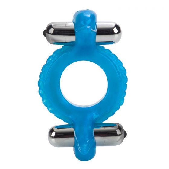 Голубое эрекционное кольцо с 2 виброэлементами Double Dolphin. Ширина - 5 см.