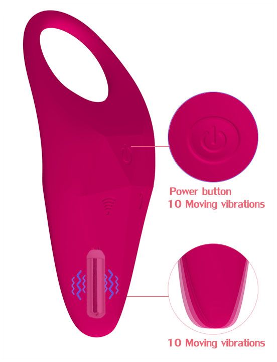 Малиновое эрекционное виброкольцо. Бесшумная работа. Водонепроницаемый. 10 режимов вибрации. Перезаряжаемый. Не требует батареек и заряжается с помощью USB-провода (в комплекте). Внутренний диаметр - 3,02 см.
