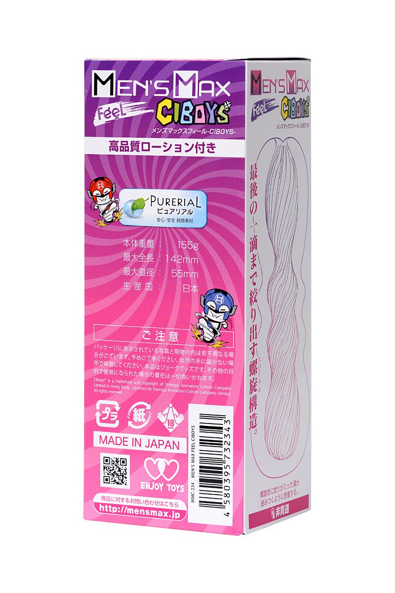 Приятный снаружи, мощный внутри — японский нереалистичный мастурбатор MensMax Feel CIBoys в точности передает характер знаменитых персонажей C.I.BOYS, которые и вдохновили дизайнеров на его создание.Инновационный материал PureReal максимально приближен к настоящей коже и содержит в себе тысячи ультрадисперсных пузырьков, которые придают игрушке невероятную эластичность. 12 ощутимых складок, закрученных в спираль, плотно обхватывают пенис и массируют его по всей длине, молниеносно доводя до сексуальной разрядки.Эргономичный дизайн обеспечивает комфорт даже во время интенсивных движений.Найдите свой эпицентр оргазма вместе с MensMax Feel CIBoys.