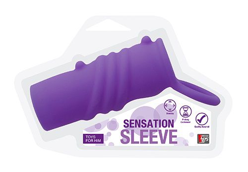 Фиолетовая насадка-эректор NEON SENSATION RIBBED SLEEVE. С подхватом мошонки.