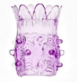 Фиолетовая силиконовая насадка с шипами и шариками. Очень растяжима в длину и по диаметру.