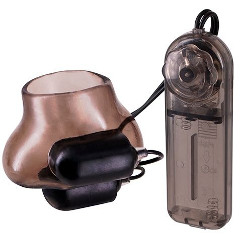 Девайс представляет собой гибкий полупрозрачный рукав для мошонки с 2 прикрепленными вибропулями и проводным пультом дистанционного управления для управления многоскоростными вибрациями.