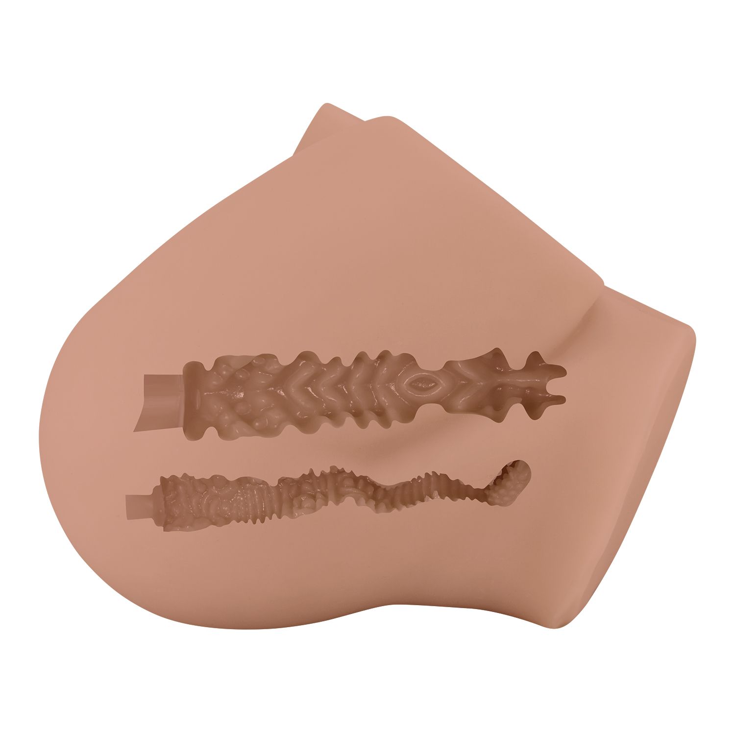 Мастурбатор-полуторс Bernace с вибрацией. Тоннели с ребристой текстурой стимулируют член от основания до головки. Проводной пульт управления. Размеры - 17,1х14,5х14,9 см.