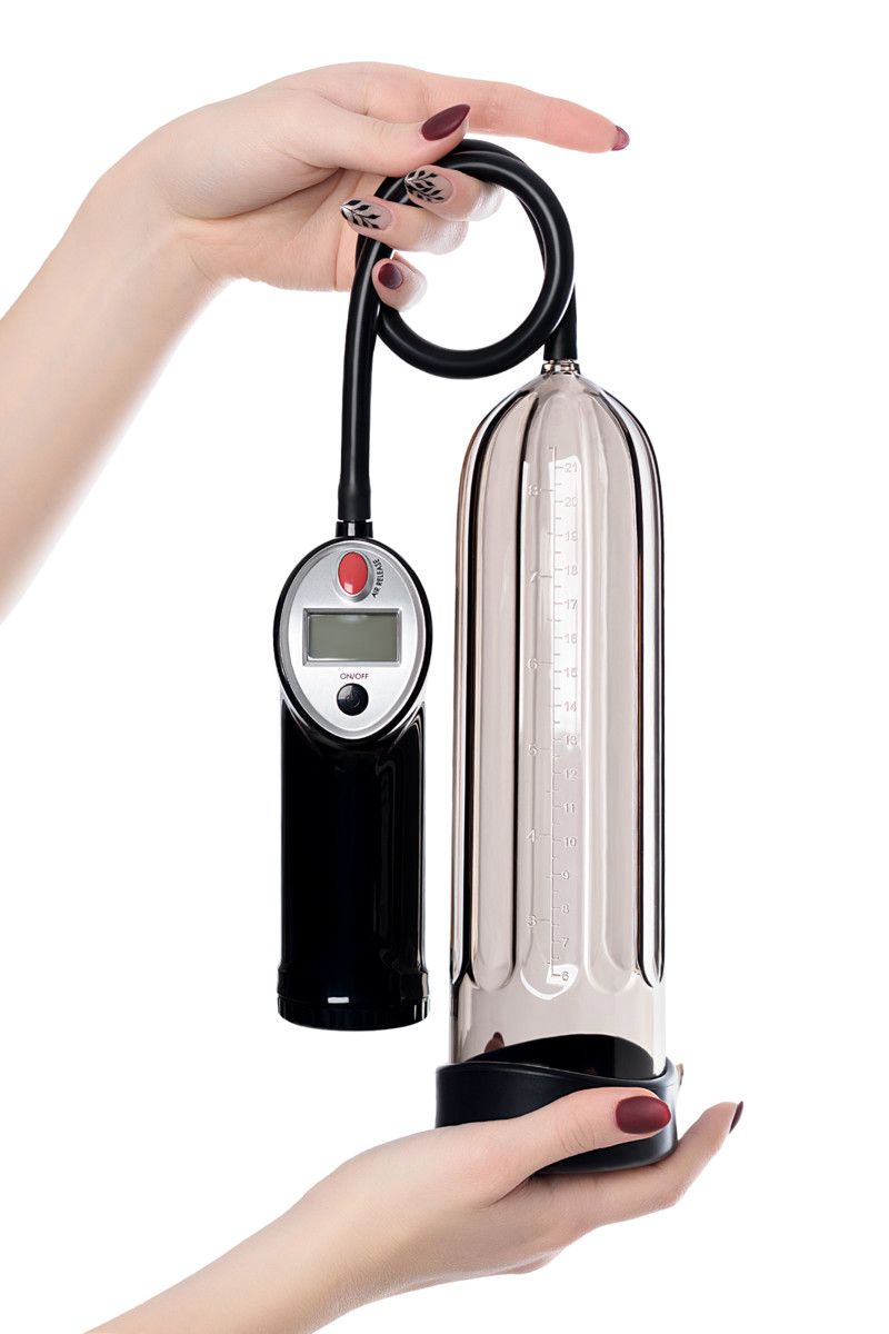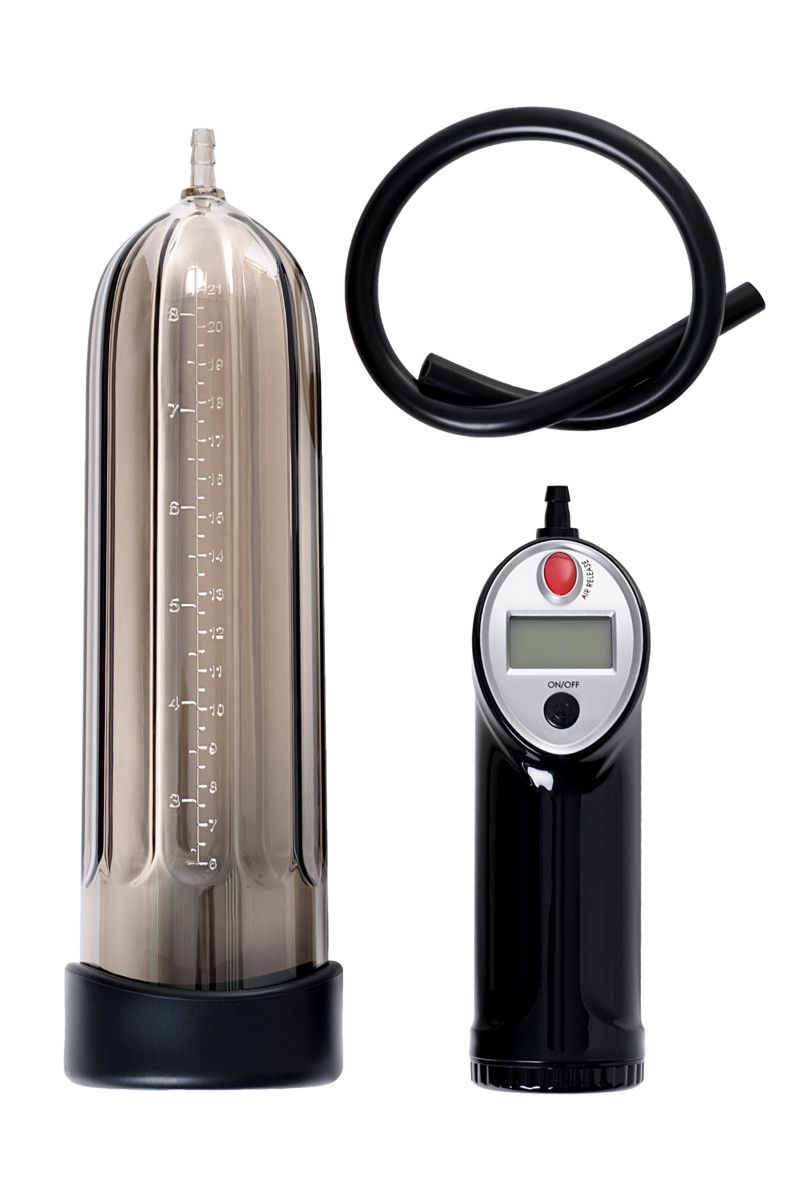 Помпа легко управляется двумя кнопками, расположенными на пульте управления с LED экраном. На цилиндре имеется мягкая накладка для максимально плотного прилегания к пенису, что позволяет создать эффект вакуума. Также на цилиндр нанесена линейка, при помощи которой вы всегда сможете отмечать свои успехи.