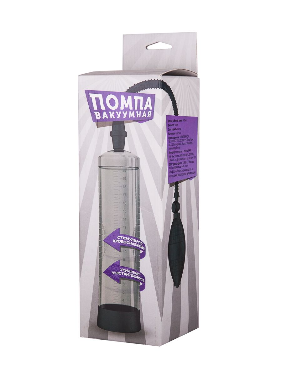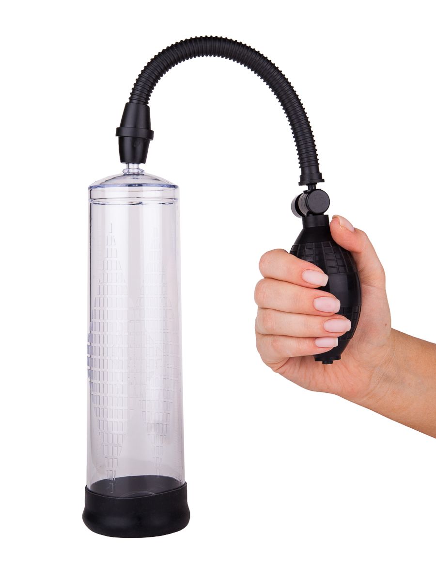 Вакуумная помпа для тех, кто живет на максимальных оборотах и получает от этого истинное удовольствие. С этой помпой эрекция будет тверже и продолжительнее. Прочная колба изготовлена из прозрачного пластика и снабжена линейкой, чтобы оценивать результат. Инновационный шланг из медицинского силикона не пережимается и отлично пропускает воздух. Помпа имеет удобную систему спуска воздуха - кнопка на рукоятке груши. Благодаря насадке из мягкого материала ТПЕ, помпа плотно прилегает к телу. В комплекте эрекционное кольцо, форма которого разработана специально для использования с помпой, и помогает поддерживать состояние эрекции. Рабочая длина - 21 см.
