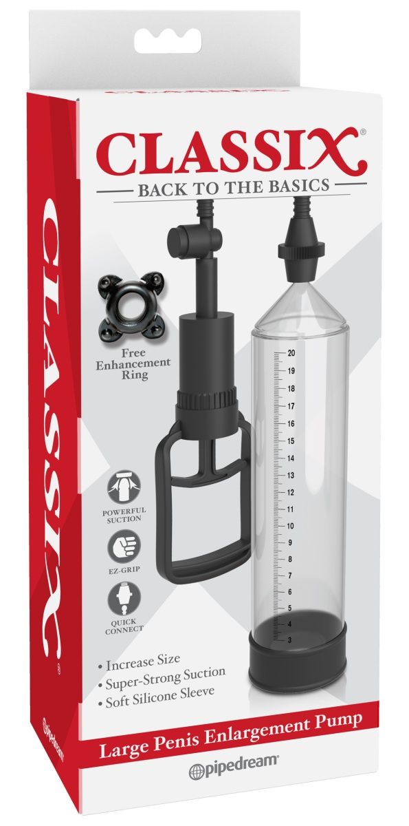 Получите размер и уверенность, о которых вы всегда мечтали. Сверхмягкая, удобная силиконовая насадка облегает пенис, образуя идеальное уплотнение вокруг основания вашего члена, создавая сверхпрочный вакуум, который дает максимальные результаты. При каждом нажатии нагнетателя вакуума помпы EZ-Grip создается плотный вакуум. Прозрачная вакуумная колба позволяет наблюдать за увеличением члена и измерять результаты. Просто нажмите кнопку сброса, чтобы мгновенно сбросить давление вакуума. Чтобы продлить эякуляцию, наденьте прилагаемое кольцо для сохранения эрекции. Плотное сжатие отдалит эякуляцию, поможет сохранить эрекцию и продлит удовольствие. Рабочая длина - 23 см.