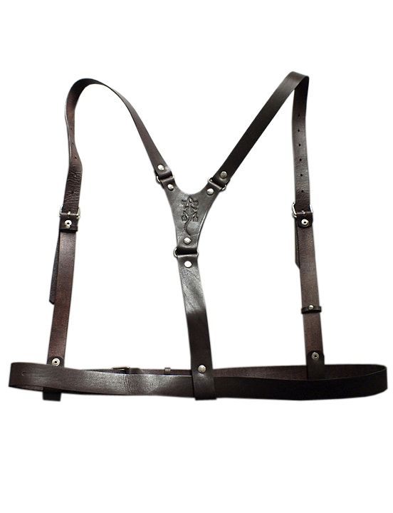 Портупея женская классическая с двумя лямками и поясом на талии, выполнена из натуральной кожи. Портупея изготовлена из кожи. Дополнительная прокраска и полировка краев обеспечивает долговечность внешнего вида. Качественная никелированная металлическая фурнитура обеспечивает прочность, лёгкость и удобство ношения. Размер регулируется пряжками. Ширина полос - 2,5 и 2 см.