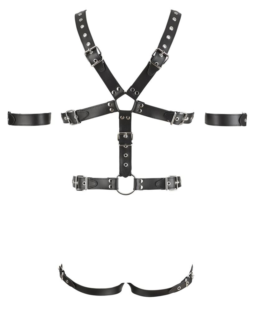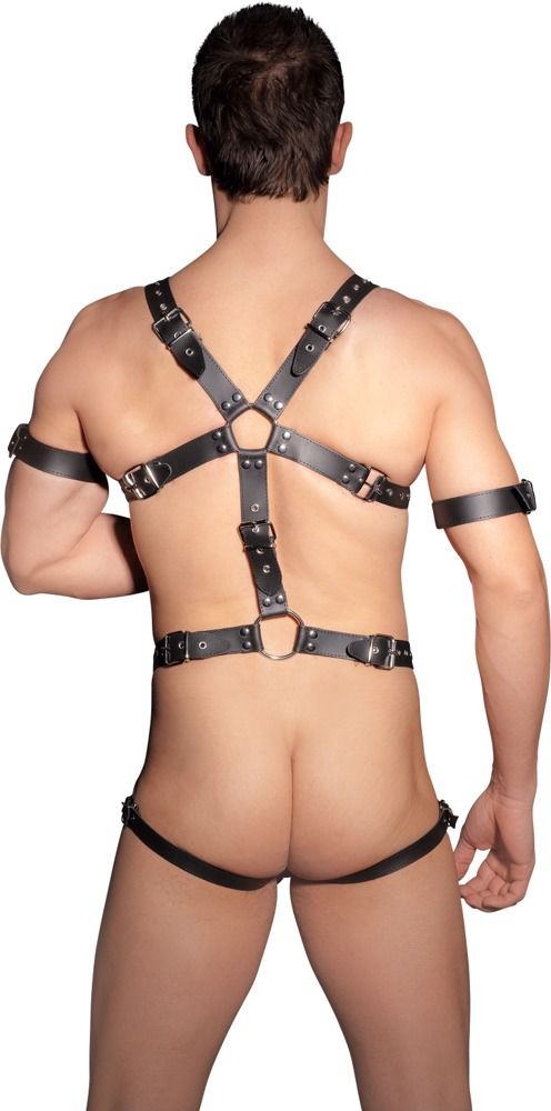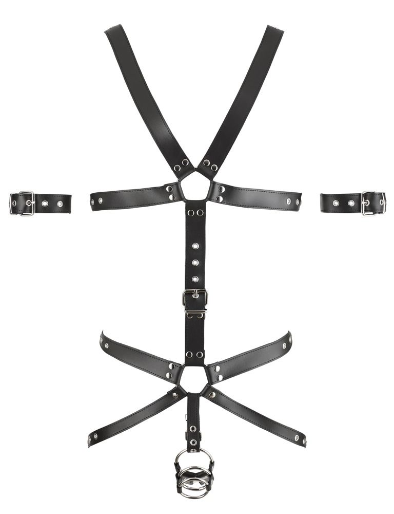 Мужское боди-харнесс с кольцом для пениса. В комплекте манжеты на предплечья.