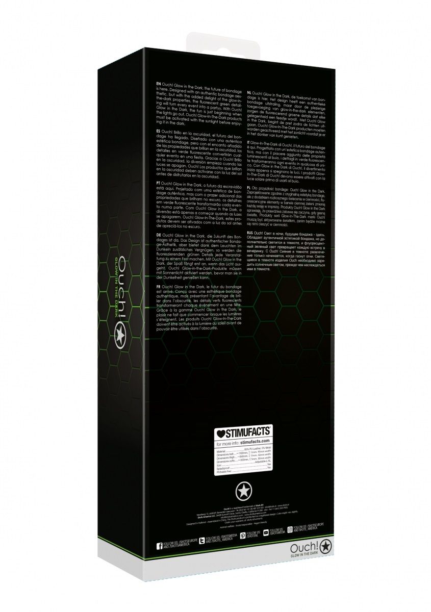 Великолепные аксессуары для БДСМ и тематических вечеринок с люминесцентными элементами не только разнообразят вашу игру, но и выделят вас на вечеринке. Выполнены из мягчайшей эко-кожи, смотрятся эффектно и не повреждает кожные покровы. В комплекте пояс, набедренные ремни и наручники. Светящиеся в темноте изделия необходимо зарядить солнечным светом, прежде чем наслаждаться ими в темноте. В комплекте: наручники, пояс, набедренные ремни. Размеры пояса: 100 x 9 x 1,1 см. Размеры набедренных ремней: 70,5 x 5,2 x 1,1 см. Размеры наручников: 30 x 5 x 0,5 см.