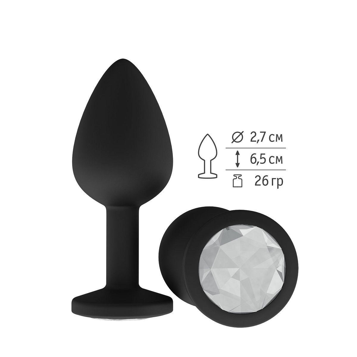 Гладенькая силиконовая пробка с кристаллом в ограничительном основании. Рабочая длина - 6,2 см.