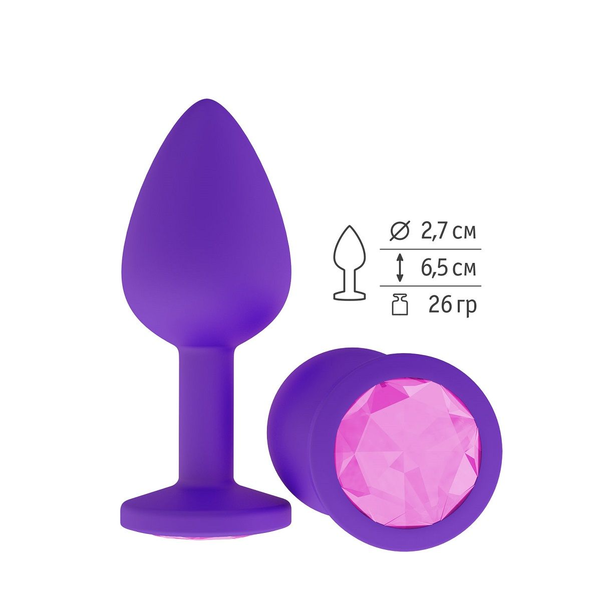 Гладенькая силиконовая пробка с кристаллом в ограничительном основании. Рабочая длина - 6,2 см.