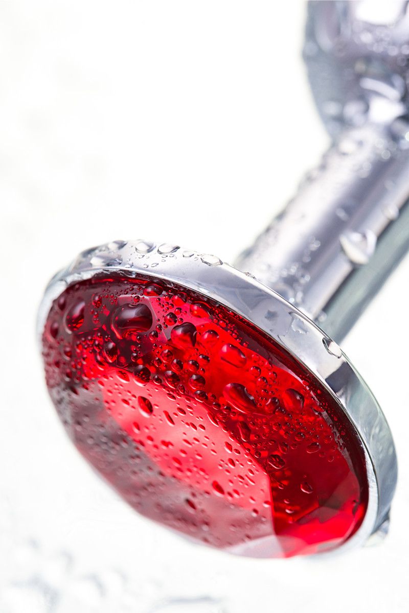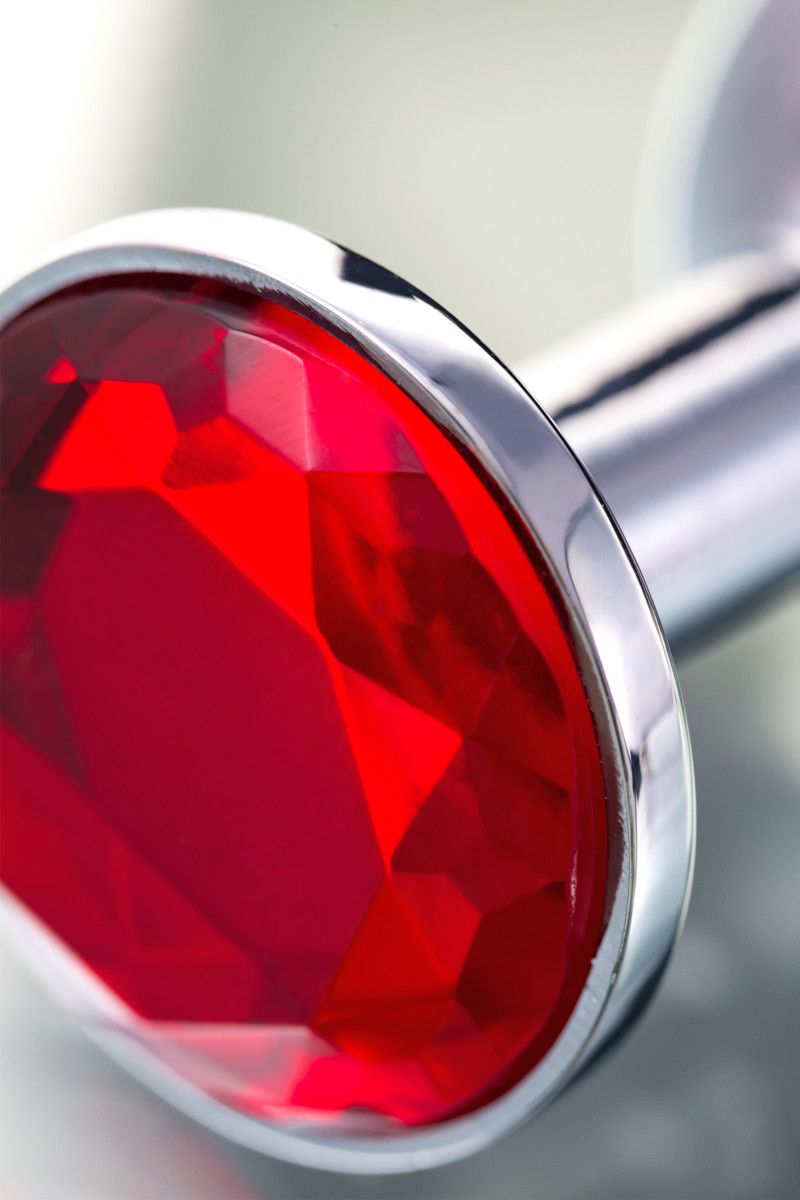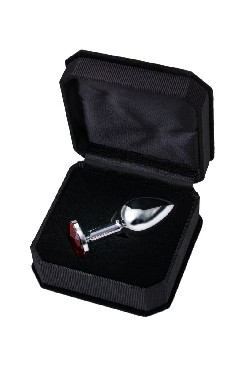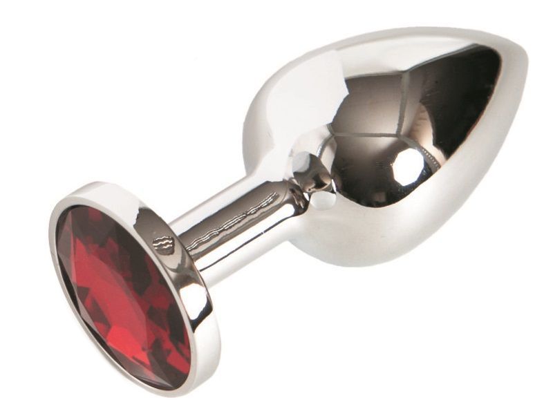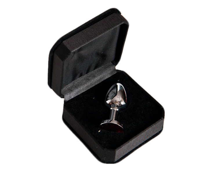 Малая серебристая анальная втулка с красным кристаллом. Поставляется в подарочной упаковке.
