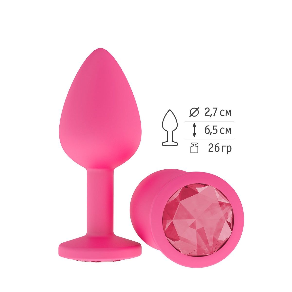 Гладенькая силиконовая пробка с кристаллом в ограничительном основании. Рабочая длина - 6,2 см.