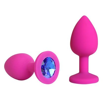 Розовая силиконовая пробка с синим кристаллом размера L. Вес - 79 гр.
