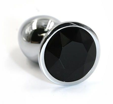 Анальная пробка из алюминия размер L. Страз в основании круглой формы, выполнен из стекла черного цвета. Упакована в вельветовый мешочек для хранения. Вес - 165,5 гр.