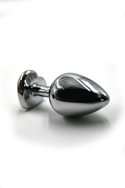 Анальная пробка из алюминия размер М. Страз в форме сердца выполнен из стекла красного цвета. Упакована в вельветовый мешочек для хранения. Вес - 93,1 гр.