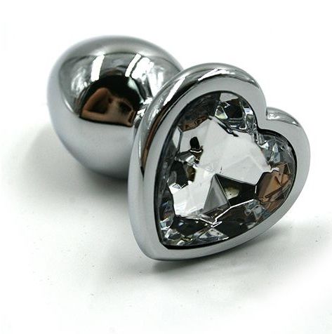Анальная пробка из алюминия размер М. Страз в форме сердца выполнен из прозрачного стекла. Упакована в вельветовый мешочек для хранения. Вес - 93,1 гр.