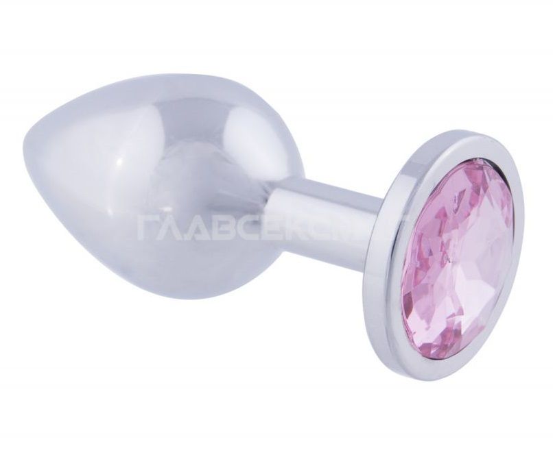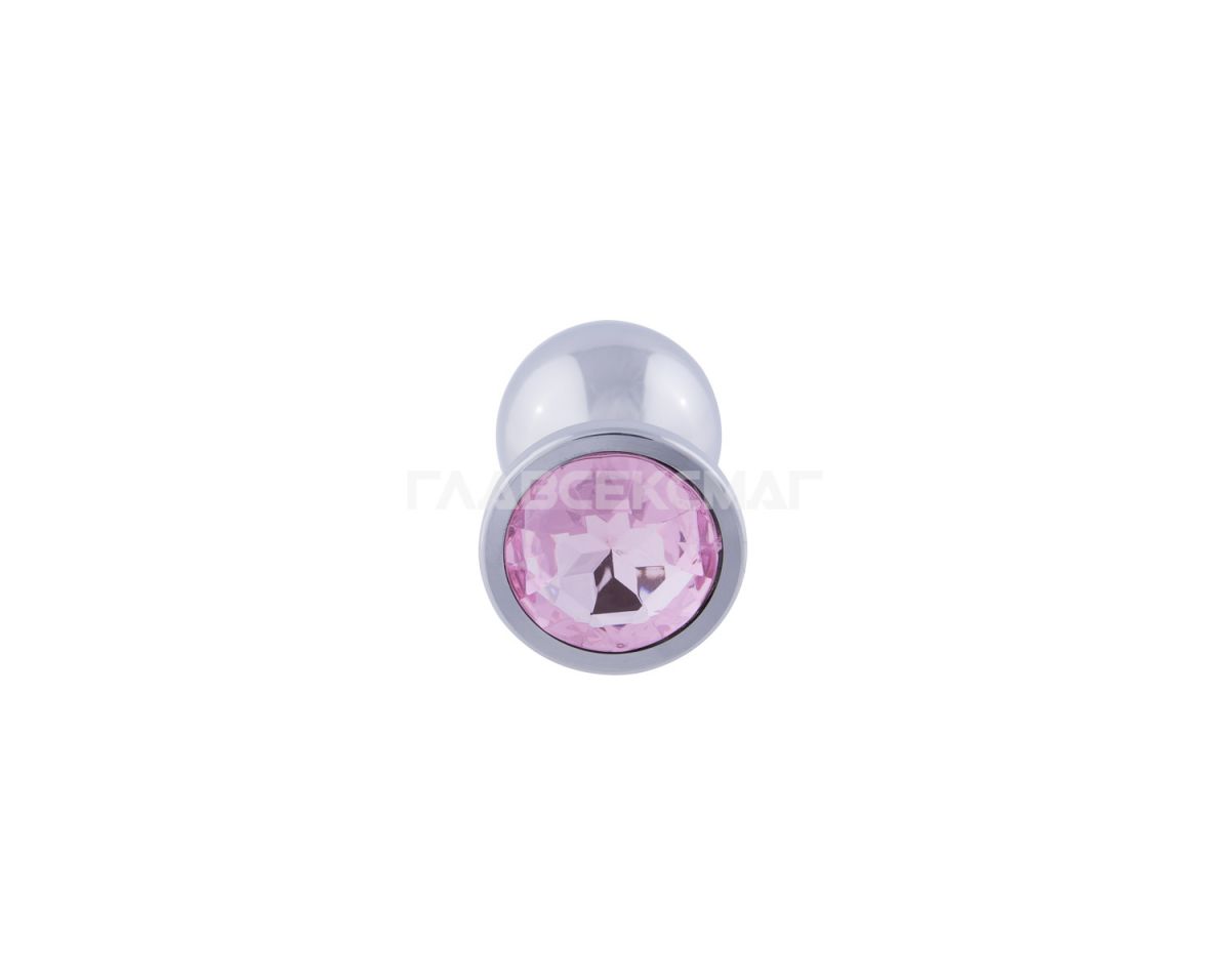 Серебристая анальная пробка с розовым кристаллом. Рабочая длина - 8,2 см. Вес - 160 гр.