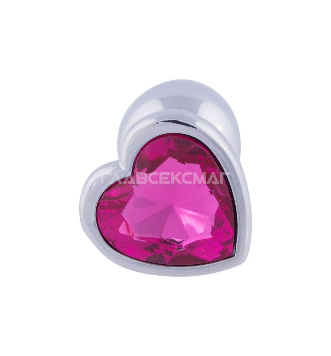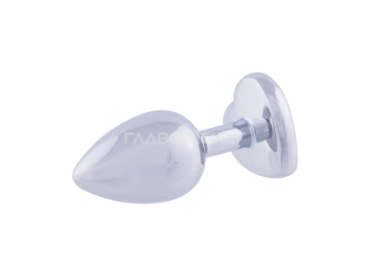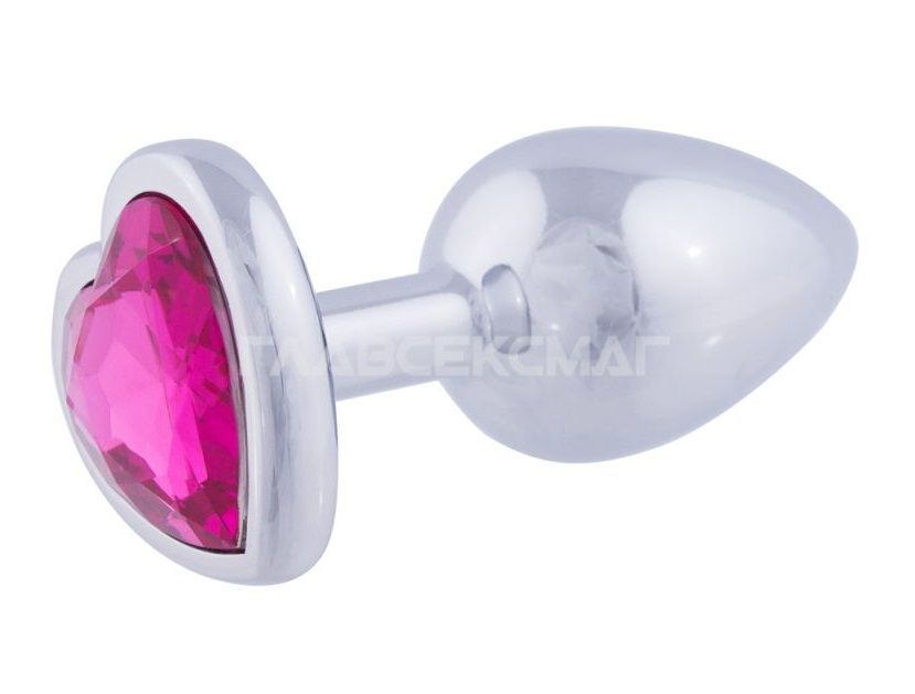 Серебристая анальная пробка с розовым кристаллом-сердцем. Рабочая длина - 6 см. Вес - 52 гр.