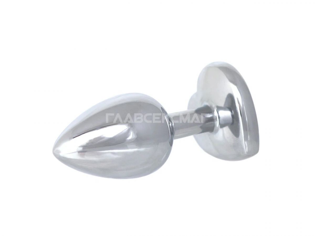 Серебристая анальная пробка с сиреневым кристаллом-сердцем. Рабочая длина - 6 см. Вес - 52 гр.