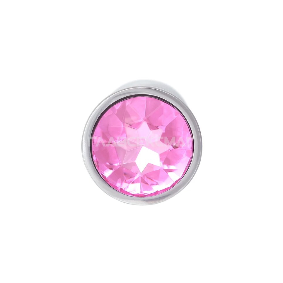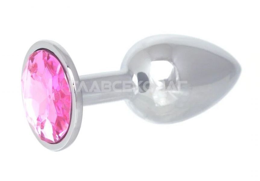 Серебристая анальная пробка с розовым кристаллом. Рабочая длина - 6 см. Вес - 55 гр.