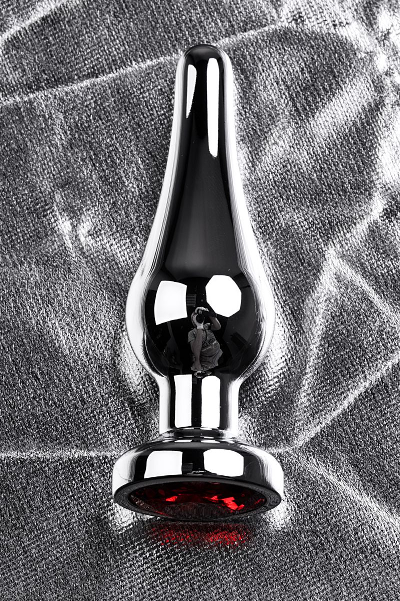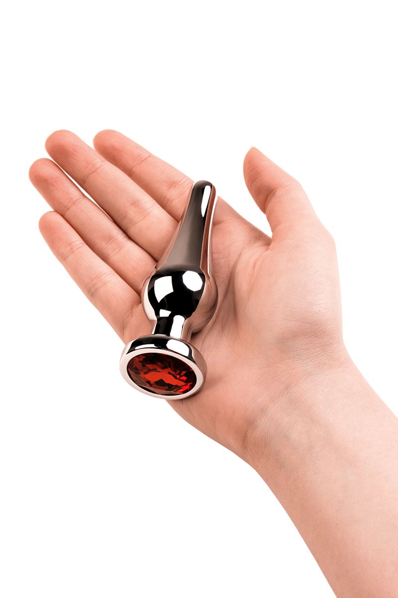Серебристая втулка в виде наконечника стрелы со стразом красного цвета. Идеальная форма для ввода и удерживания внутри. Рабочая длина - 8,5 см. Минимальный диаметр - 1,6 см. Вес - 95 грамм.